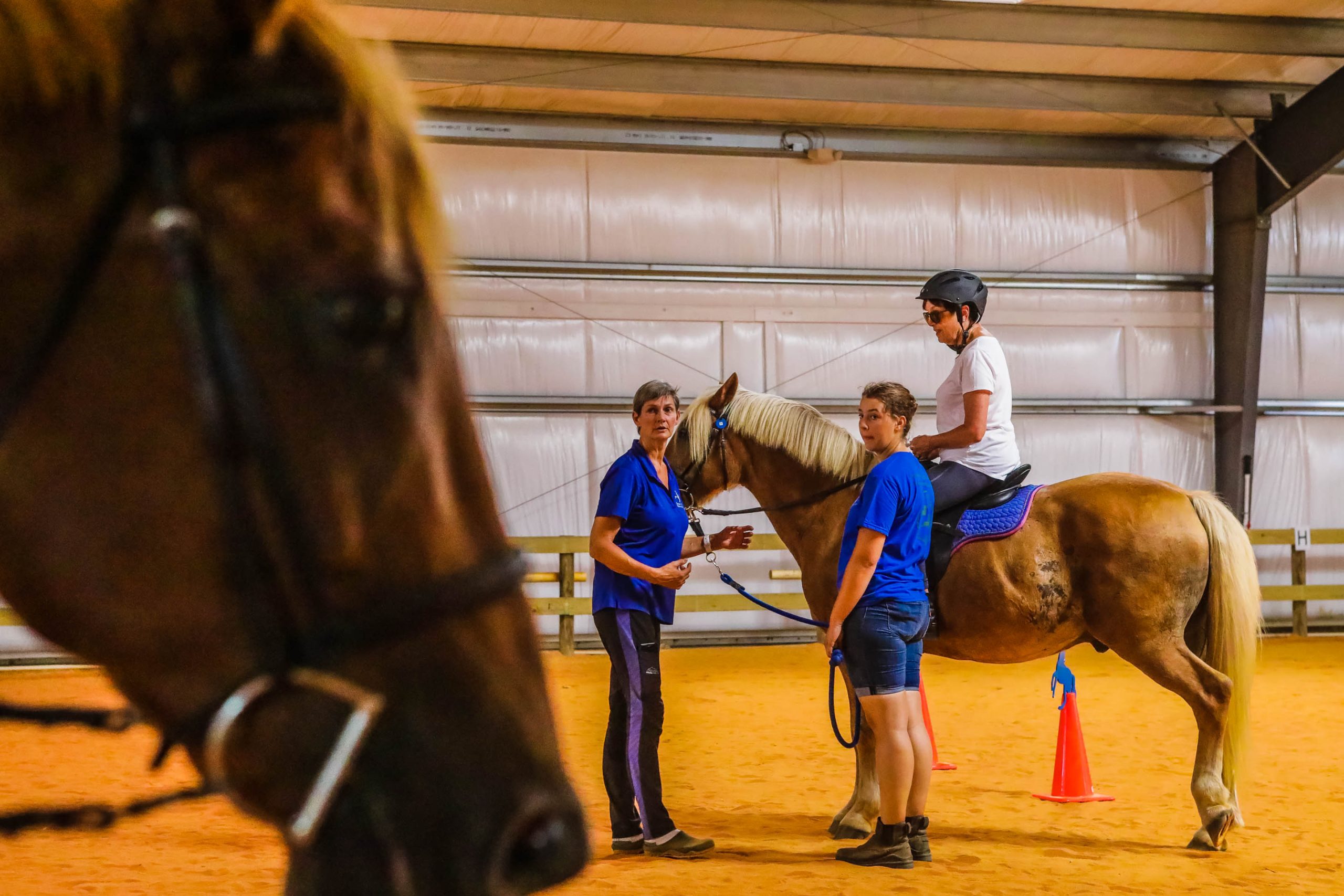 Adaptive Horsemanship serves children and adults with disabilities and offers physical, cognitive, and emotional benefits—from increased flexibility, balance, and muscle strength to enhanced communication, confidence, and social well-being. Led by PATH Intl. Certified Therapeutic Riding Instructors, lessons are tailored to support participants’ individual goals through mounted and unmounted activities. Mounted sessions are designed to teach riding skills, with the therapeutic benefits of improved core strength, balance, coordination, and increased confidence. Unmounted groundwork emphasizes communication, boundary-setting, and leadership through guided interaction with equines, including grooming and leading activities that promote self-awareness and connection.