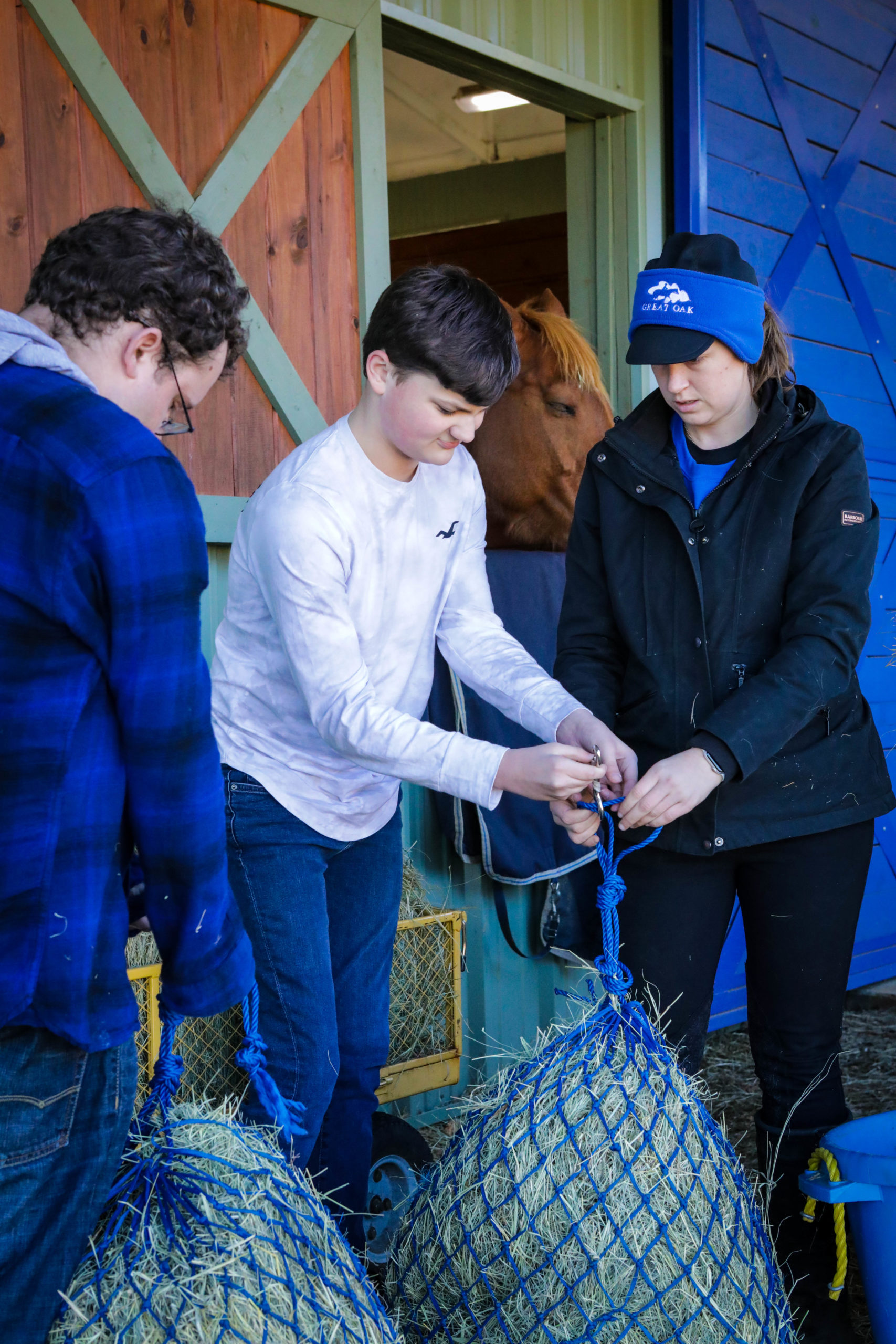 Great Oak’s Equine-Assisted Learning program is designed to educate the public on the significance of the horse-human bond, promote understanding of equine communication and welfare, and provide experiential opportunities through which participants gain insight into the meaningful ways horses enhance human lives. From educational field trips to corporate team-building and community-based instruction, Great Oak welcomes a wide variety of groups to our farm each year. At the heart of these learning experiences is our groundwork curriculum, which guides participants through a series of structured activities with equines and PATH-certified instructors that emphasize boundaries, communication, self-awareness, and leadership. Experiences can be tailored to the specific age, goals, and intentions of each group to ensure meaningful and engaging participation.